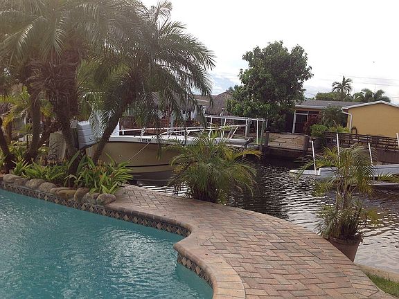 Ocean access with boat lift.Very large kitchen, breakfast area and formal and informal dining room, covered patio serves as large tv/family room., formal living room. One bedroom serves as office/ guest room. Two full bathrooms and half bathroom for recreation room. Pool beautiful paved patio with tiki hut.