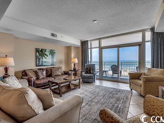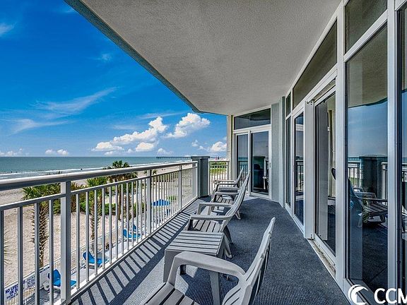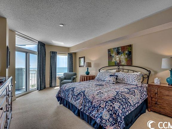 Huge direct oceanfront 4 bedroom 4 bathroom condominium in Ocean Blue. This is a rare listing. There are only 36 residences in this luxury building. Spectacular ocean views from the large balcony. The living room and two bedrooms are direct oceanfront. Nicely furnished and accessorized. Granite counter-tops in the kitchen and bathrooms. Stainless steel appliances in the kitchen. Washer/dryer for your convenience. The master bathroom features a double sink, a shower and a tub. This would make a wonderful primary residence, second home or vacation rental property. Ocean Blue amenities include climate-controlled enclosed corridors and an assigned parking spot for each unit (an unusual feature for oceanfront condo buildings). There's an outdoor pool and grilling area. Also, there are a number of indoor water amenities available for year-round use - a lazy river, another pool and hot tubs. To top it off, there is an exercise room. The south end location is very close to the restaurants and shops of Market Common, the Myrtle Beach International Airport, Coastal Grande Mall, Downwind Sails and the Myrtle Beach Boardwalk and just a couple of miles from Broadway at the Beach. The HOA fee includes water/sewer, unit electric, cable and internet, as well as building insurance. All information is deemed correct, but it is the responsibility of the buyers and their agent to verify all information.