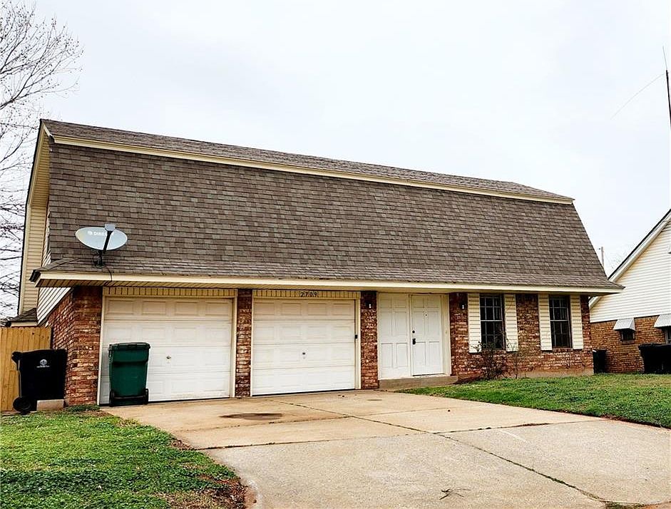 Located near Tinker Air Force Base, several shopping outlets, and restaurants for easy access to them all! As you step inside, you will notice a newly painted interior with new carpeting throughout. There is a beautiful entryway with a decorative iron railing staircase and a spacious living room with several windows allowing natural light to flood the room! There is an additional family room with windows to the backyard just off kitchen, perfect for watching TV and family gathering while you prepare your food in a kitchen that is perfect for the home chef, and features oak cabinetry, gas-burning stove, and LVP flooring for easy cleanups! The 2 car garage, 1/2 bath and laundry room are just off the dining area. The primary bedroom is complete with 2 closets. Upstairs you will find 2 additional bedrooms, a full bathroom and another 1/2 bathroom. The spacious backyard has a large patio and is fully fenced. You won't want to miss your chance on this one! Schedule your private tour today!