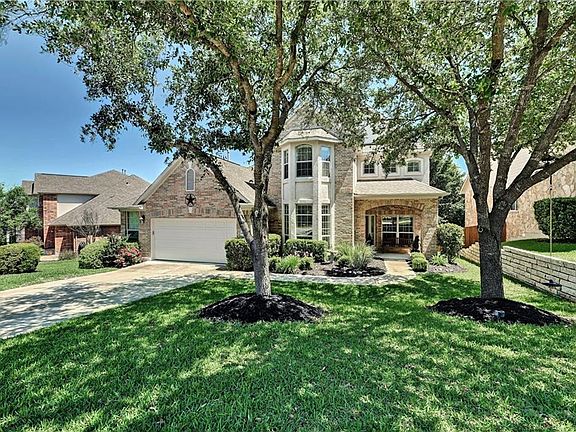 Stunning Steiner Ranch 4 bdrm, 3.5 bth, 2 story home on sought after cul-de-sac lot. Updated neutral palette, soaring ceilings, light & bright w crown molding, arched openings, formal dining & living areas & great room w fireplace. Kitchen boasts 42" cabinets, gas range, ss appliances, double ovens, granite ctrs, tile backsplash & ample cabinetry for storage & prep. Spacious master retreat down. 3 BR, 2 BA & flex space up. Pool sized backyard w privacy fence great for entertaining or outdoor activities. Just 50 yards from the entrance to one of the best trails in Steiner Ranch!