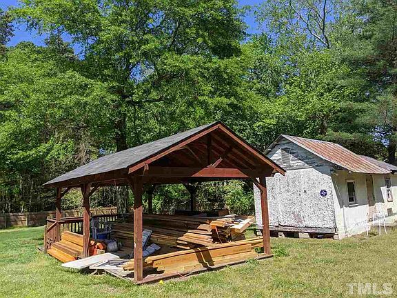 Little slice of paradise in Apex! Directly across from Knights Play golf course. Original home was built in 1959, majority of the home is an addition, added on in 1989. Updated in 2007. Over 1 acre, with gazebo, workshop, and space for much more. original 1959 home currently functions as an attached office space, and would make a great mother in law suite. Sale is a court ordered partition sale, subject to upset bid at the court house. Home is in great shape for being a court sale.