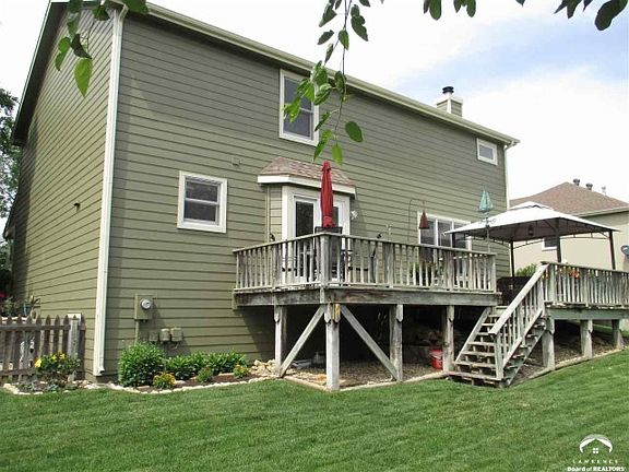 Great Prairie Meadows 2 story with eat-in kitchen, formal dining, upstairs master suite and laundry. Large deck, fenced yard, front porch and landscaping to enjoy. Newer Hardie siding, cedar trim, low-e clad windows, Pella patio door w/built-in blinds, bronze fixtures and hardware. Fresh exterior paint April 2015. High efficiency York furnace & AC installed 2013. Center of Lawrence location w/easy access to new K10 bypass for KC/Topeka commuters. Seller to pay up to $3,000 of Buyer closing costs.