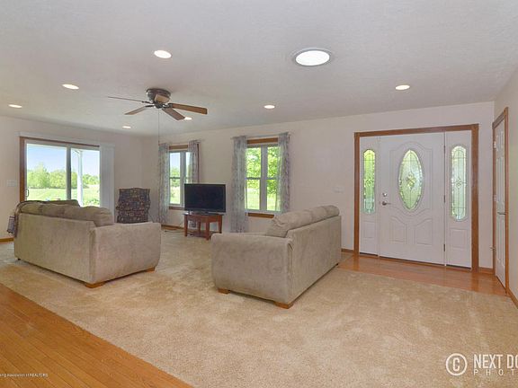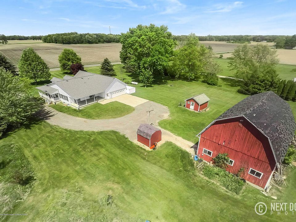 Welcome home to 2709 W Beard Rd in Perry. This stunning move in ready 5 bedroom, 3 bathroom ranch home was built in 2005 and features a 27x10 covered patio, a wraparound porch, a 30x20 barn, a 10x8 shed, a 8x8 shed, and is situated on 40 acres; 30 of which are tillable, the remaining 10 are wooded. Additional features include an open floor plan, hardwood floors, floor to ceiling cabinetry in the spacious kitchen, a full basement ready for your finishing touches, wired for a whole home generator and much more!