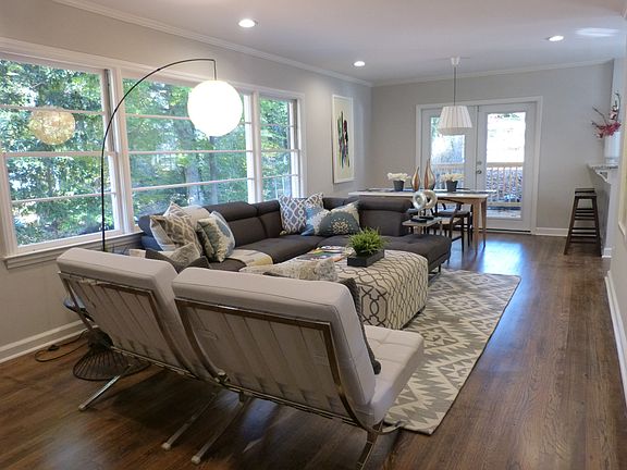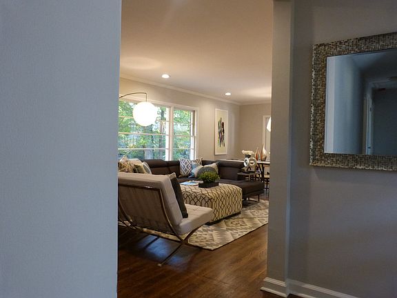 Strikingly Mid-Century Modern, this charcoal gray brick Ranch will delight you with the clean & contemporary high-end finishes throughout. Almost everything is new! Light-filled, open floor plan connects kitchen to the great rm-extend entertainment space by opening the French doors onto the side deck lending to huge, private backyard w/huge oaks & Magnolias. Ensuite master & guest bath feature clean & contemporary bathroom tiles, cabinetry & fixtures. Lots of opportunity to expand living space in huge, walk out basement. Quiet, well-kept and friendly neighborhood.