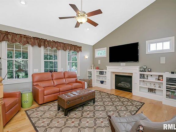 Stunning 4-bedroom, 4 bathroom, 1-1/2 story home with river view! The main level features a living room, formal dining room, informal dining room, great room with gas fireplace, kitchen with stainless steel appliances and granite counters, laundry room with storage, screened porch, and master bedroom. The master bedroom has a walk-in closet, master bath with garden tub and tile shower. The upper level includes 2-bedrooms with jack-and-jill bathroom. The finished basement has a family room with gas fireplace, full bathroom, 4th bedroom, and large walk-out storage room. The 3-car garage is heated and has access to attic storage. This home is equipped with a central vacuum, hardwood flooring, hard wired surround sound throughout the home, and a security system. Home has immaculate and well maintained landscaping. It features a stamped patio, numerous types of flowers and trees, gorgeous landscape lighting, irrigation system, and a new retaining wall. Great for entertaining!