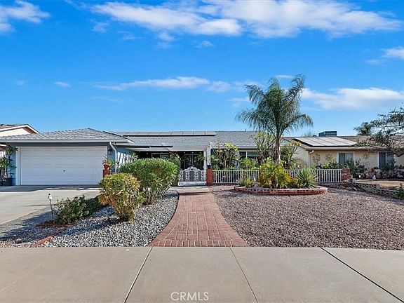 This Home is a Must See! Great Curb Appeal, The Brick enclosed Front Patio area has White Wrought Iron Gates with Slate, Rock & Concrete Flooring. Peaceful Sounds from the Fountain Leads you to the Front Doors that have Decorative Security Screens. This is Senior living at its best! As you walk into this Spacious Open Floor Plan you are greeted in the Great Room with Rich WoodLook Interlocking Waterproof Vinyl Flooring (in the heavy traffic areas). This Room is Perfect for Entertaining with its Custom Built-in Bookcases and Cabinets for Storage below. Gorgeous Remodeled Kitchen has Tiled Flooring, Newer Appliances, Cabinets with Roll-Out Drawers with Quiet Close, Pantry, Granite Countertops & Granite Sink with Breakfast Bar. Open to the Fam/Dining Room where you can relax by your Beautifully Remodeled Fireplace with more Custom Shutters & the flooring is the same durable waterproof Vinyl as in Great Rm. The Primary Bedroom is Lovely has Shutters & the Waterproof Vinyl Continued, a Huge Closet with Mirrored Sliding Doors, Extra Custom Cabinets in Dressing Area with Upgraded Countertops & Faucets. The Dressing Area & Both Bath Rooms have Tile Flooring. Bath 2 also has an Upgraded Countertop & Faucet. You will Love Bedroom 2 with it's Amazing Built-In Shelves & Computer Desk, the Flooring is Tile and it even Extends into the Walk-In-Closet! There are Walnut Ceiling Fans throughout the home. As you move towards the Decorative Security Doors leading to the Backyard there is a Nice Office/Sitting area Approx. 8' x 22' (room addition may not be permitted). This Lovely Home is Perfect for anyone Retired or Looking to Retire soon. Spacious Backyard with Pergola, Alumawood Patio Cover, Backyard Vinyl Fencing on No. & So. sides and the East Back Wall is a Block Wall. There is a Wonderful Workshop/Shed too. Community Amenities include: 2 Large Pools, Jacuzzi, Fitness Center, Indoor Tournament Shuffleboard Court, Tournament Lawn Bowling, Horseshoe Pits & a Large Variety of Clubs & Activities, all of which Enhance Sun City Seniors Lifestyle! Very Low HOA's & Taxes. Welcome home!