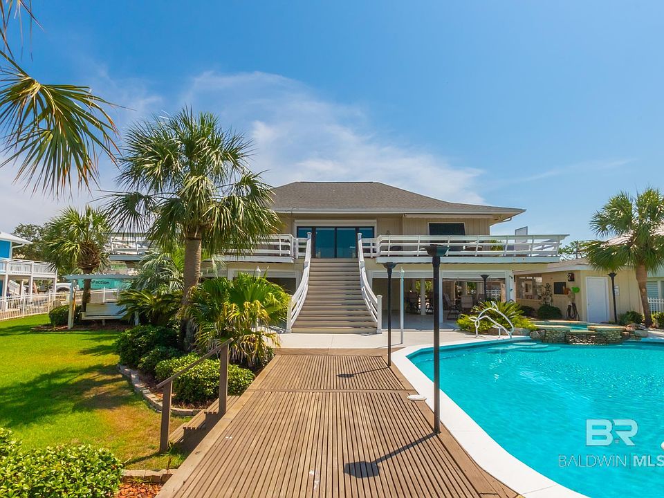 One of the most sought after areas in Orange Beach! This is a very RARE opportunity on Deep Water in Terry Cove!! Bring your boats, yes boats, stock up on sunscreen, bathing suits and fishing gear!! This Beautifully landscaped 3 bed/3bath home is a water lovers paradise. Trek patios, stairs and wood boardwalk lead you to your covered boat house and entertaining oasis with two boat lifts, fish cleaning station, over ninety feet of waterfront to set up your patio furniture. Fill up the refrigerator, turn on the TV and pour a tall cool drink from the bar. If you want to cool off even more, step into the inground gunite pool and spa with amazing fire feature for the chilly nights just steps from the waters edge. The space under the home is plentiful and an entertainers dream with cabinets for storage and water feature with KOI pond. Just behind the doors you will find a 4 room workshop and laundry facilities with a full bathroom. This space can easily be turned into a Mother-in Law suite, guest space, workout room or man cave. The property is fully fenced, has a full house gas generator, cargo lift, wired for night torches, fire feature and all the lighting you desire. There's golf cart garage so bring your golf cart!! This is a must see property, live the waterfront dream and call me to schedule your showing today!! All information deemed reliable but not guaranteed, buyer and buyers agent should verify pertinent information.