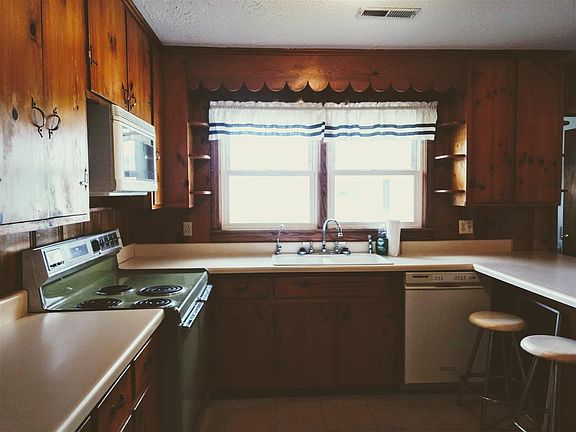 Ranch style home situated on about 1.7 acres of level land. Has a fabulous 24' X 38' garage or workshop that is wired. In addition is a 4 bay carport suitable for vehicles or farm equipment. Home is being sold "as is", seller says things work. The 1/2 bath is in utility/laundry room which comes with a washer and dryer. Large eating bar in the kitchen. Replaced windows. 10 Pecan trees and 2 fig trees are on property. Home has a metal roof and a storm shelter. Central heating and air are less than 2 years old. The enclosed garage/game room held a pool table. There is ample space for a garden. There is a good sized patio between the house and garage. Desirable location.