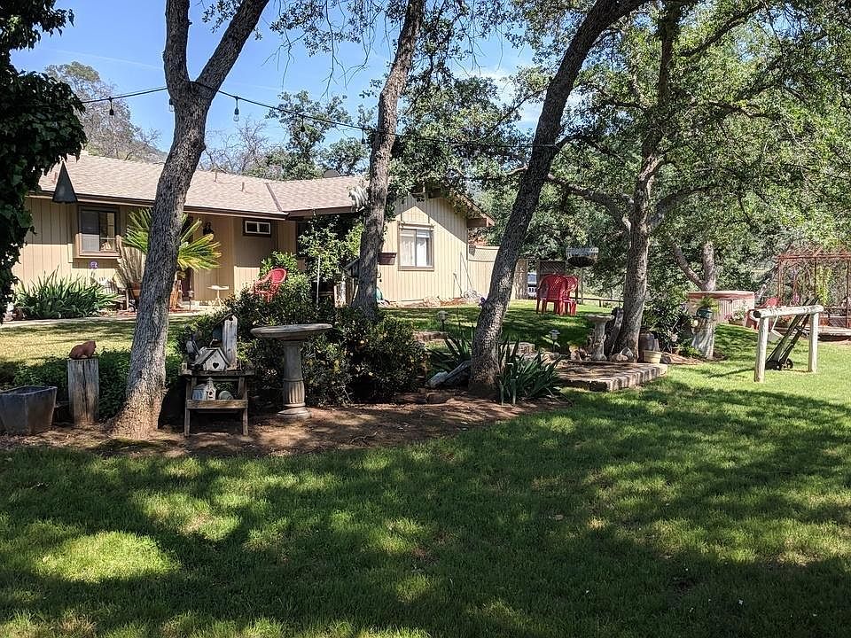 Live in paradise yet be only 15 minutes to the city! This Entertainer's delight is a beautiful, park-like all fenced 13.75 acres with separate fenced areas for animals and separate fenced yards. The huge landscaped front yard and inviting back yard are just calling for entertaining and enjoying the gorgeous scenery. This lower foothill home is move-in ready w/new granite counters in the kitchen new granite counter featuring 2 breakfast bars,a bay window with a seat & storage in the eating area & open to the large LR. All bedrooms have large walk-in closets. The LR is large and features a wood stove with a rock hearth and oak mantle. Roof replaced Jan '18 & new interior paint too. This property also backs up to 40 acs of BLM land. Storage/shipping container & riding mower may be purchased separately.