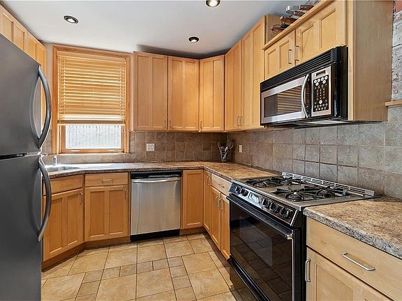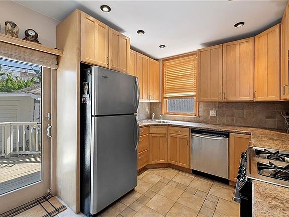 If you want space then this is the home for you! This detached single family 3 story home was built in 1905 and is situated on a 40 x 100 lot with southern exposures and 25 windows . There is plenty of natural light and such grand space. The first floor has been renovated with an Eat in Kitchen featuring an abundance of maple cabinets , plentiful countertops, tiled backsplash and stainless steel appliances.There is stylish black and white tiled bath with a large shower stall. A great feature are the sliding doors leading from the kitchen to a deck and a yard.The living room is spacious & has custom built -in shelving, and a decorative fireplace that was once a working one.There is also a large bedroom with generous customed built closets. The first floor has high ceilings, recessed lighting, hardwood floors and a beautiful bathroom.The second floor has 3 large bedrooms with an expansive primary bedroom 19x 19.3 sun-drenched with 5 windows .The third floor consists of 2 bedrooms with closets and extra storage under the eves. There is a detached oversized one car garage and the extra-long private drive can accommodate 4+ cars.This house features 3 zone heat, bay windows, charming entrance foyer,lovely high front porch to relax or socialize on,original doors,beautiful landscaped front garden,gas/oil, circuit breakers, attic crawl space and a full basement. This superb home is in an ideal location because you can enjoy the hidden treasures that Bay Ridge has to offer such as dining at a variety of restaurants, outdoor cafes, gourmet markets, street fairs ,parades, concerts and nightlife. Easy access to public transportation minutes away , 86th Street shopping strip and close to Shore Road Promenade. This is a big and beautiful home!