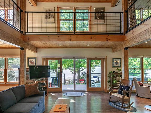 Pristine Harvey’s Lake is a prime spot for lakeside living in Vermont. Imagine stunning sunsets, fall colors, sparkling waters, and misty early morning paddles. Six years ago, the owners built a new home which incorporated their fresh architectural take and energy-efficient approach. The dramatically open interiors stream with light. Because of the structural system, one enjoys full connectivity on all three floors. And yet the open spaces can easily be designed to suit the needs of new owners. The 4-mile trip from I-91 (connecting with I-93/I-89) induces a fresh mindset, crossing along the agricultural ridgeline leading to the destination, a private lane with a handful of largely seasonal homes. Barnet is ideally situated on the southern tier of the Northeast Kingdom. Convenient access to the White Mountains, the Upper Valley, great skiing/mountain biking at East Burke, the Rail Trail, numerous hospitals, and one of many quintessential Vermont towns, Peacham. It’s a simple drive to vibrant St. Johnsbury. St. J’s boasts of a prestigious Academy (free tuition for Barnet residents), the Athenaeum, Fairbanks Museum & Planetarium, Catamount Arts, the Dog Chapel, a variety of markets, breweries, art galleries and restaurants. Enjoy the simple access to milfoil-free waters, a well-laid out kitchen pivoting around the Thermador stove, the hot tub on the deck, heated 2-car garage, low maintenance, and energy efficiency. Year-round living and working on an idyllic lake!