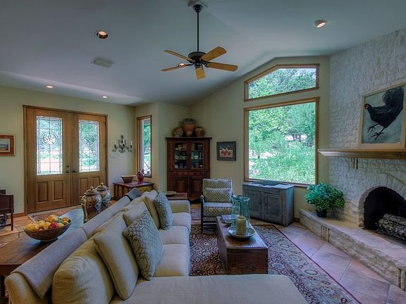 Set on 33.41 acres this Texas style hill country custom 2BD-2BA home features approx. 3000 SF, elegantly designed and tastefully decorated. Amenities include: Granite counters, stainless appliances, tile floors, large picture windows, fire place in great room and master suite, covered porches, large covered patio that is perfect for entertaining, limestone exterior and metal roof. Need an extra room for guest? A cozy 1BD-1BA guest cabin with covered porch, your guest will never leave. Separate studio/office/multi-purpose bldg. Detached 2+ car garage/workshop and More! Plus 1 YR home warranty..
