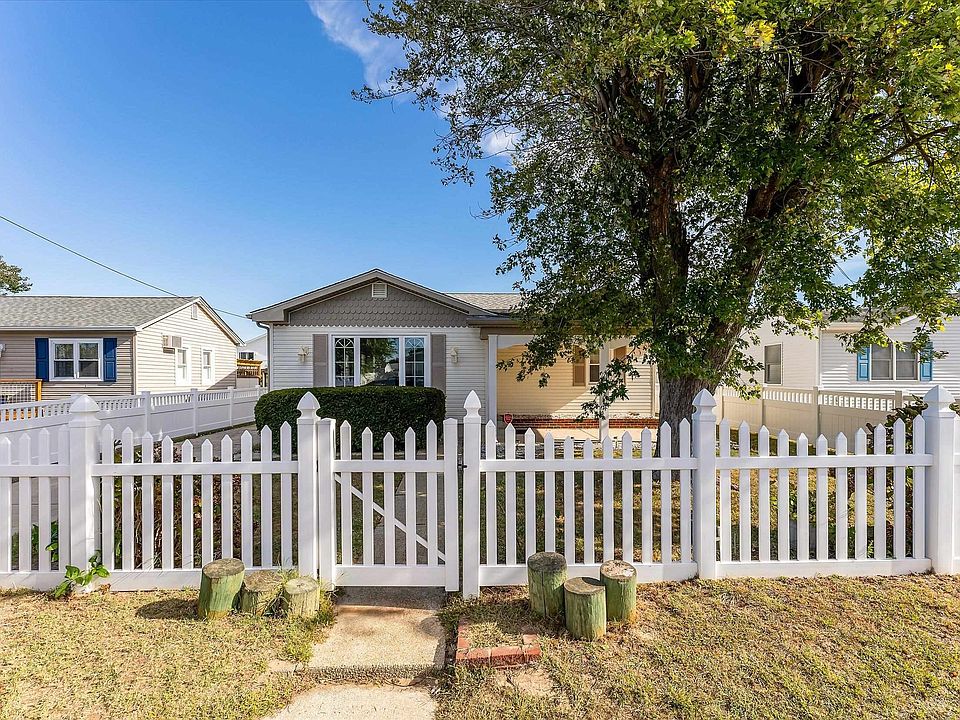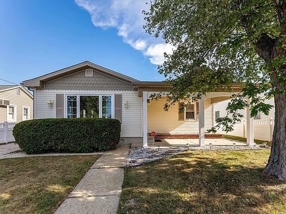 Fourth House From The Bay! This spacious split 3 bedroom, 2 bath single story home has a really nice split floor plan, a fantastic location, & an oversized garage. Beyond the white vinyl picket fence you will find a covered front porch where you can sit and listen to the sound of the waves. Inside you will find a nice sized living room with two bedrooms, a full bath, and a large laundry/utility room to the right. Also, from the living room you can make your way to the eat in kitchen which leads to a good sized family room. Off of the family room you will find the primary suite which offers a full bathroom & large closet. From the family room you can exit to the rear deck, which is a great place to enjoy dining al fresco. There is a concrete driveway along the side yard leading to an oversized pole barn garage with pull-down stairs for attic storage. You will also find a large shed in this fenced in yard. Natural Gas HVAC less than 5 years old. This is a great opportunity to spruce up a home to your liking for year round living, summer vacations, or an investment property. Enjoy bay days & amazing sunsets just a few hundred feet away!