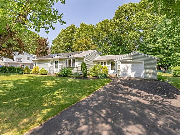Great Ranch is set on a very nice dead end street. Vinyl sided with insulated replacement windows and a 12 X 15 foot trex deck. You are sure to enjoy the fenced backyard, and Deck Mature Landscaping and attached oversized garage with automatic opener. Flexible floor plan is in good condition and has had some updates to kitchen and bathroom . There is a spacious living room plus 3 bedrooms with hardwood floors. Eat in Kitchen and a 12 X 10 room that could be a family room or dining room. Added Living space in the basement, includes; a Finished Recreation Room with a Bathroom that could be for entertaining or a great teen suite. Base Board Hot Water Gas Heat and Rented Gas HWH. Stainless Steel Kitchen Range, Refrigerator, Air Conditioner are included for Buyer's Enjoyment. This is a great value! Back on the Market because Financing Fell Thru. This is your opportunity.