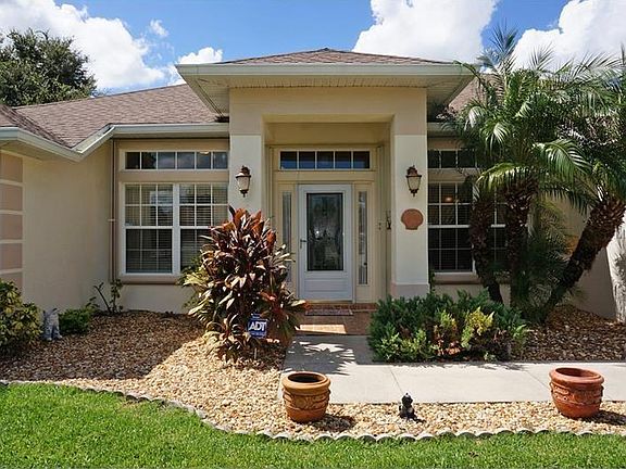 Spacious 4 Bedroom, 2 Bathroom home with attached 2 Car Garage located in desirable, deed restricted DEEP CREEK. NOT in a flood zone. County water and sewer. This home offers an open and split bedroom floor plan with Great Room, Den, separate Dining Room, well appointed Kitchen. The Kitchen offers wood cabinets, granite counters, a breakfast bar and dining area. Bathrooms also have wood cabinets and granite counters. Design features include tile, carpet and wood laminate flooring, vaulted ceilings, plant shelves, hurricane shutters, screened sliders at the garage opening, generator hook up in the garage. Your living space extends to the screened lanai and pool area with large covered lanai plus open deck for sunbathing and heated inground gunite pool. Close to shopping, dining, golf, I-75 and a short drive to medical care, waterfront parks and boat ramps. This home is great for a family or those expecting winter visitors!
