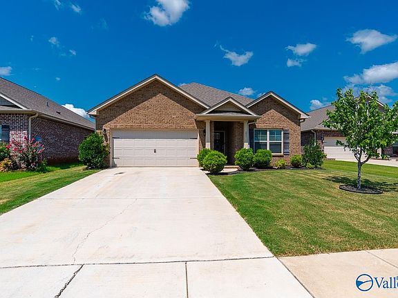 100% FINANCING AVAILABLE!! NO CARPET ANYWHERE! This better than new 3 bed 2 bath home located in Madison City School district has 2 car attached garage and fenced backyard with covered patio. Moving inside there are 2 guest bedrooms wired for ceiling fans, ample sized laundry room, open floor plan concept. Living room with fireplace, ceiling fan, trey ceiling, crown moulding. Kitchen has granite counters, stainless steel appliances, large island with plenty of serving and eating space, pantry, and eat in breakfast area. Master bedroom complete with trey ceiling, crown moulding, ceiling fan, walk in closet, en suite bath, double vanities, separate shower, and more. LVP floors + blinds!!