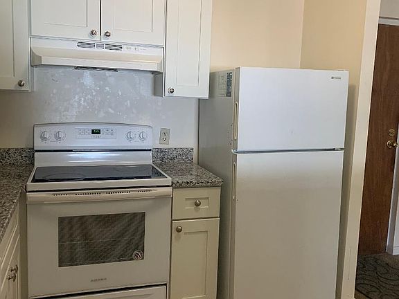 Newly renovated one bedroom in managed brick apartment building. Apt consists of a new kitchen and new appliances. Kitchen has electric oven, refrigerator, dishwasher, and disposal. Open living room with good sunlight. Bedroom and living room are newly carpeted. Quiet building. Rent includes heat and hot water. Coin operated laundry in the building. Parking for one car. A one-year lease is required