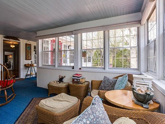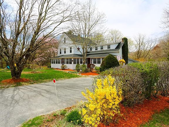 A captivating & beautifully maintained circa 1904 antique farmhouse with lots of old New England charm, nooks and crannies. 3 season ground level wrap around porch, sun lit by day & then perfect for late evening conversations. A room for every need, a spacious eat in kitchen with sitting area, a quiet study to get lost in the pages of your favorite book, a cozy tv room set off to the back, a formal dining room w/ hardwood floors, a large 1st floor study or bedroom, a handicap accessible main level & bathroom, office space, ample bedrooms, walk up attic and small 1st floor work shop / craft room. Front & rear staircases add to the charm. Book shelves and built ins await new owners & their contribution to the next chapter in the the history of this distinctive home. The .97 acre property is private and mostly fenced except for the paved circular drive.