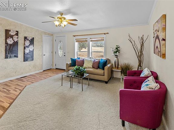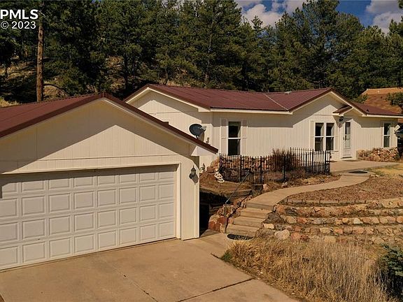 Description: You'll love watching the herds of Elk that frequent the meadow in front of the home. Fully remodeled in 2023 with new paint inside and out, updated plumbing and electrical. Gigantic 4-car (2 wide & 2 deep) garage plus a storage building and greenhouse all on 6/10 acre. The home has 1296 sq ft of living space with a living, dining & kitchen great room; 2 bedrooms, both with en-suite baths and a laundry with ample storage. On the out-skirts of Florissant, CO, hiking, biking and OHV trails are nearby in the Pike National Forest, Florissant Fossil Beds National Monument, Mueller State Park, Dome Rock State Wildlife Area. Fishing is a short drive to Eleven Mile, Spinney and Catamount Reservoirs or the Gold Medal South Platte river. Dining, shopping and entertainment is minutes away in Florissant, Cripple Creek and Woodland Park. This is a good one. Don't delay, stop by and see us today.