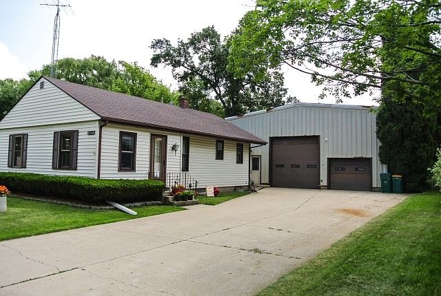 Attention Garage Lovers! 6 CAR HEATED ATTACHED GARAGE WITH ADDITIONAL AIR CONDITIONED BONUS ROOM! True 6 car, one 12' OH door one 7" OH door, w/french drain & 220 electric. Garage is 42x38. Home is very cute 4 bed ranch w/one bath. Hardwood floors under carpet. Full bsmt inclds rough in bath and laundry.
