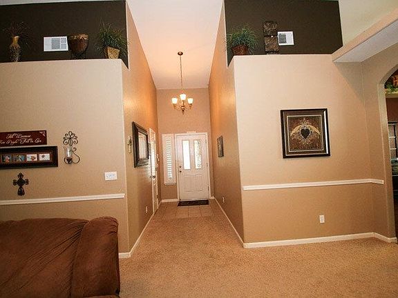 Feel like home for the moment you step in. This home has 2 large living areas with double sided fireplace giving you the ambience in both. Vaulted ceilings with beautiful wooden shutters throughout the home give the home that custom feel. Very open kitchen/family rm layout with breakfast bar, walk in pantry and tile floors. The laundry room is good size with built in cabinets. Oversized main bedroom with sitting area, 2 closets, and large master bath with his/her vanities, soaking tub, large shower plus door to backyard & patio. Two additional bedrooms plus opportunity to convert part of master to a 4th bedroom. Hall bath with large 2 sink vanity, tub shower combo, tile floors & storage closet. Mature landscaping in backyard and covered patio offer plenty of shade plus OWNED SOLAR.