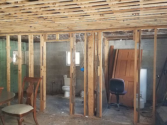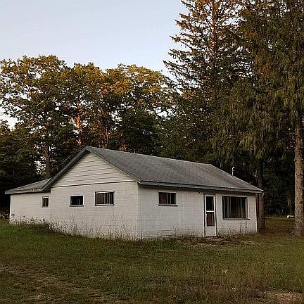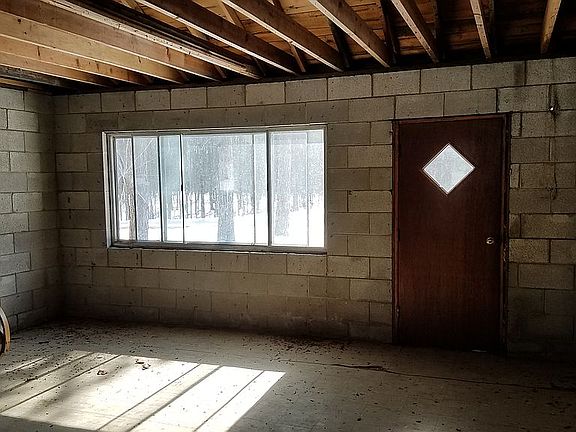 Block house on 20 wooded acres.Land is level to rolling and dry. Across the street from thousands of acres of national forest. House is gutted to studs. By appointment only. No land contract. Has well and septic but unknown condition