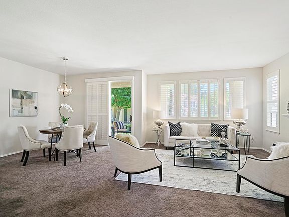 Don't miss seeing this charming home, located in The Club within the gorgeous master-planned Wood Ranch community! Ready to downsize? Here's your answer! First time buyers? You'll love the ease of livability here. Light & bright thruout w/ all new interior paint, this unit is move in ready. Plantation shutters, an open & flowing floor plan, w/ newer carpet make for ease of living. A gracious entryway, w/ double doors & screen doors built in, welcomes you.Easy guest parking, an attached double garage & gated entrance all add value.The Living Room features a cozy Fireplace;both Dining Room & Living Room have inviting outdoor patios w/ easy access. Chef's Kitchen is HUGE, w/ direct garage access, tons of storage, brand new wine refrigerator & a darling eat-in area, plus handy breakfast bar. The Master Bedroom Suite is spacious, w/ easy access to charming patio, perfect to enjoy your morning latte. Double sinks, a large soaking tub & a very generously sized walk in closet complete the Master Suite. 2nd Bedroom boasts plantation shutters, new paint & a conveniently located second bath w/ oversized shower. Laundry is hidden inside unit. A community Pool & Spa, 2 private patio areas & gated entrance all make for great So Cal living! Resort Living includes: Private lake for picnics & scenic strolls, close-by community park w/ tennis, sports fields & playgrounds, as well as private country club & championship golf course. This is the home you've been waiting for. Come visit, soon!