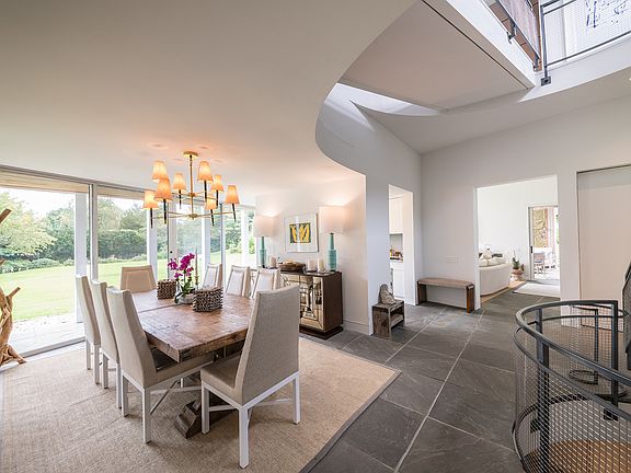 Oversized panels of glassBright open living spacesSecond floor balconySouthern exposureMature trees and plantsRadiant heated bluestone floorsRoom for tennis
