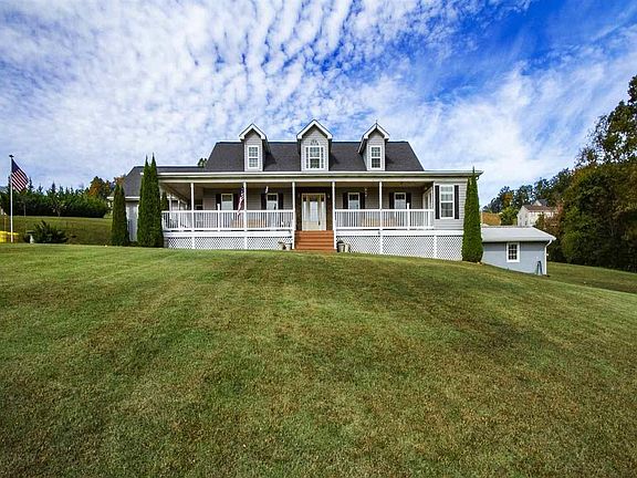 Panoramic Mountain Views! Check out this all main level living home and 5.10+/- acre farm property. This stunning home provides 2,938+/- square feet of living space with another 2,000+/- square feet in the partially finished basement that naturally stays at a comfy temperature. The main level has the master bedroom, two more bedrooms, a fantastic kitchen, living room, and laundry room. One of the garages is on the main level as well. Upstairs is a large bathroom, den, and extra room that can serve as a guest room. The home has amazing hardwood and tile floors throughout. The kitchen is an absolute chef's dream with all the counter space for prep accented with a gorgeous stone backsplash.