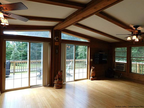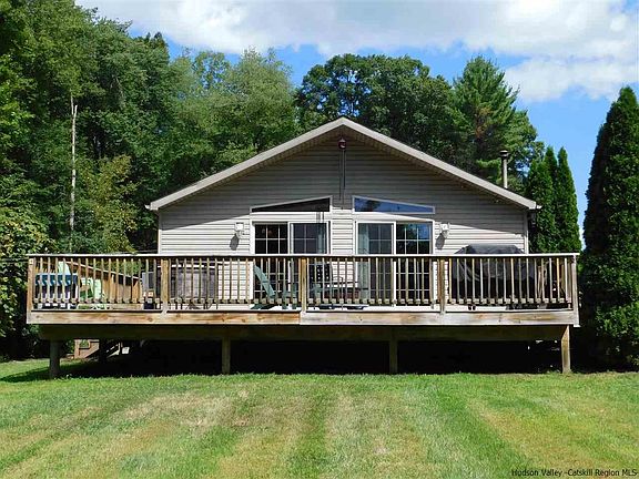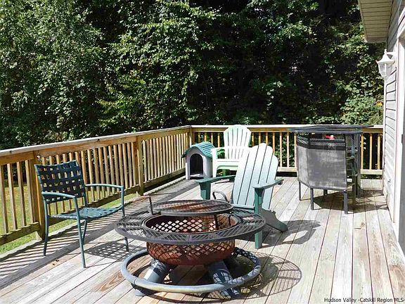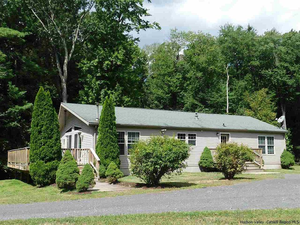 Tucked away down a long driveway and surrounded by woods for ultimate privacy but only minutes to Rosendale, New Paltz, Mohonk Mountain House, Minnewaska State Park, farm stands, microbreweries, restaurants, theaters, golfing and so much more. Nicely sited on 2.21 acres offers this charming, well-maintained three bedroom and two bath ranch home. Property has excellent features including a large open floor plan with vaulted ceilings, living room, kitchen with island, stainless steel appliances and dining area. The living room offers a cozy space with tongue and groove interior walls, bamboo flooring throughout and pellet stove. The combination of natural light and warmth of the wood interior are inviting and cozy for long hours around the fire. The master bedroom features a walk-in-closet, ensuite bath with dual sink vanity, garden tub and separate shower. The two additional bedrooms share a central hallway bathroom. Laundry room conveniently located on the main level. The double sliding glass doors lead out to the expansive deck. Great for summer BBQ’s or just relaxing. Full walk out basement is partially finished with a bar area and recreation room. The unfinished space is utilized as a workshop and additional storage. Outdoors offers a hot tub, shed and two car detached carport. Easily accessible from the NYS Thruway. Enjoy upstate life and all the Hudson Valley has to offer!