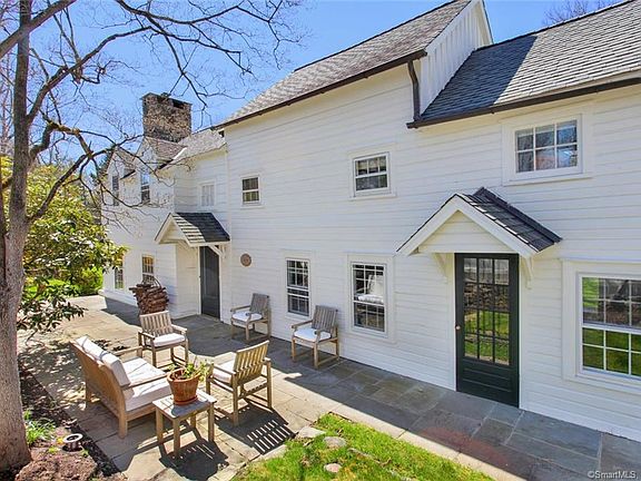 Situated on a lovely landscaped, private acre this sun-filled New England Farmhouse dates from 1806 with the grand dining room, original stone fireplace, beamed ceiling, and lightened wide plank floors. Expanded in 1937 to include the gracious living room with stone fireplace and a discrete home theater. Updates over the years offer the best of both worlds - charm and convenience. The bright kitchen boasts a window pane butler's pantry, wine cooler and large bay window for viewing the garden. The blue stone terrace with outdoor fireplace is perfect for entertaining. The large windowed all-season playroom/porch invites the outdoors in. 5 bedrooms and 3.1 baths. Full house generator. 10 minutes from the Cos Cob train station, 150 yards from the Greenwich border. Welcome to WAYSIDE.