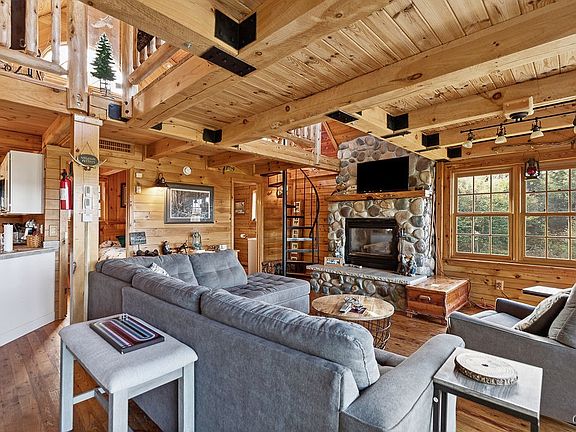 But there’s more! The property features the "Lodge," a fully insulated secondary building with a full kitchen and 2 bathrooms. The first floor is home to a large Fisher wood stove, 2 bedrooms, and a generous space for gatherings. Upstairs, additional sleeping quarters and another full bathroom ensure plenty of room for guests.