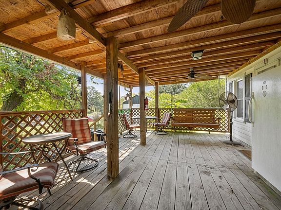 Porch swingCovered front porchWindow over the sinkAc unitLarge bathroomTwo bedroomsCovered deck