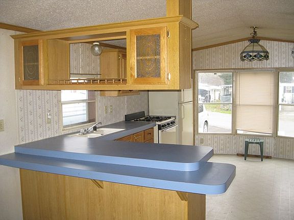 Single wide mobile home in park right outside of town has eat-in kitchen with breakfast bar, new carpet in master bedroom and living room, and efficient natural gas heat. Appliances, carport and shed are included. Lot rent is $420 per month and includes water and sewer. Sale subject to park management approval for lot rental agreement