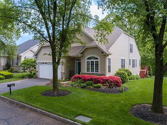 Experience the blend of comfort & elegance in this 3BR, 3BA detached home, ideally located in a peaceful 55+ community in Franconia Township. The open floor plan welcomes you w/a living & dining area featuring hardwood floors, crown molding, and fresh paint. It leads into a spacious kitchen that boasts ample cabinets, countertops, an island, & breakfast area w/tiled flooring. Adjacent to the kitchen, the family room is a highlight with its brand-new Karastan carpeting, offering a cozy and inviting space for relaxation and gatherings. The convenience of 1st-floor living is unparalleled, with a primary suite featuring four closets, vaulted ceilings, and a private en-suite. An additional bed, full bath, & laundry facilities are also located on the 1st floor, ensuring accessibility & ease. Up the newly carpeted stairs, the 2nd fl enhances the home's functionality and privacy, perfect for guests or extended family. It includes a third bedroom, a full bath, & loft w/new carpeting, creating an ideal space for visitors to relax & feel at home while maintaining privacy & comfort. Step outside to a beautifully landscaped yard w/a deck that offers a perfect setting for relaxation or entertaining, tranquil views of the community walking path & the woods beyond. Complete w/full basement & 2-car garage, this home combines the serenity of suburban living w/the practical benefits of its thoughtful design. Schedule your showing today to discover this perfect blend of convenience & style.