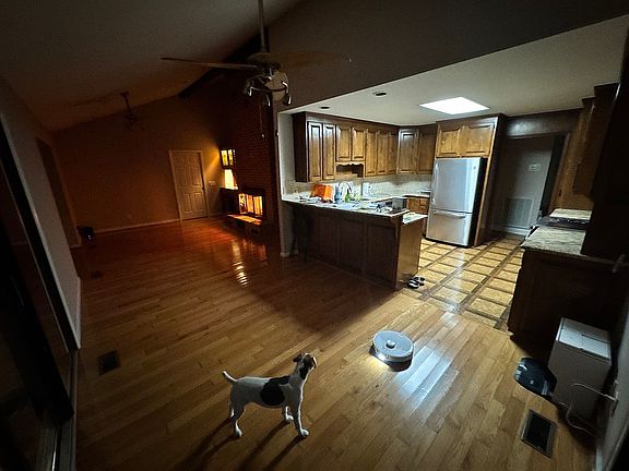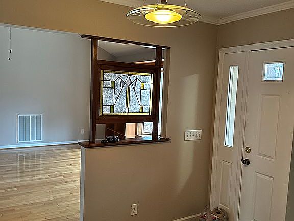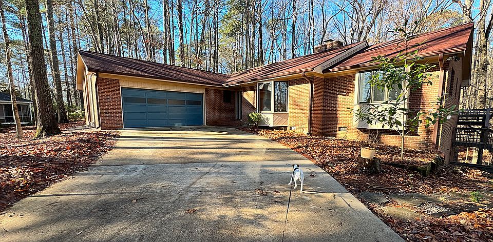 Timeless brick ranch with double sided fireplace, split bedroom plan, 2 car garage, vaulted ceilings. The view to the rear of this property reminds visitors of being in a treehouse. Amazing! Sliding glass doors across the back of the house open to an expansive deck. Open sunroom from master bedroom and dining area. Single story with workshop and crawl space. House sits up on a hill with lake views during winter. Neighbors are quiet and friendly. Don’t miss out of on living on The Point at Carolina Trace.