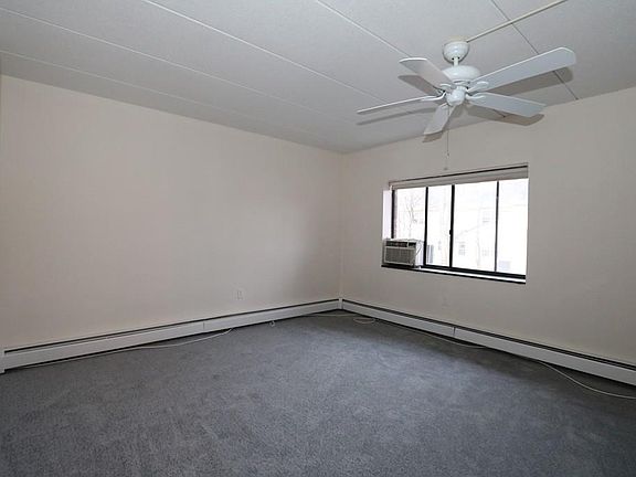 Patriot Village located near pond, shopping, highway and many other local convenience stores. 2nd floor, spacious, freshly painted, new bathroom w/large porcelain tiles (Italy) & frameless slide doors, refinished kitchen-QUARTZ countertops w/glass tiles backsplash, new wood laminate floor in dining & living room, new carpet in both bedrooms and all new light fixtures! Features: All 4 rooms have ceiling fan w/lights (included kitchen), wall AC in living room, tiled bath w/linen closet, hall w/2 closets, large bedrooms w/large closets, oversized balcony with storage, plus additional private storage in basement. Best part: Two spacious end parking spots! Both handicapped and are the closest to the front & back entry, just steps away & THE ONLY at Patriot Village! FHW/Gas: Heat, hot water & gas cooking are included in HOA! Common laundry and separate storage room for bikes in basement. Dog & cat (2/50lbs Max) are welcome with Board approval. HIGH OWNER OCCUPANCY!