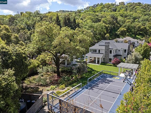 Renovated to perfection this beautiful estate has a gated entrance leading to a luxurious retreat surrounded by rolling hills and towering trees. The entry into grand foyer leads to an open floor plan with soaring 12ft ceilings, sweeping staircase and an abundance of natural light. The timeless living room is located just off the kitchen, with adjacent modern dining room. The kitchen is a chef’s dream, featuring a large center island with bar seating, marble countertops, a La Cornue oven, and subway tiling. The family room offers a second room for informal gatherings while the additional main floor office/bedroom creating a perfect retreat. A second staircase from the kitchen leads to large bonus room with vaulted ceilings. The primary suite boasts a separate seating area or workout room, two sizable walk-in closets, bathroom with marble vanity, heated floors, and a steam shower. Three large guest bedrooms with two of them connected by a walk-through bathroom. Incredible backyard is an entertainer's paradise with oversized pool, spa, gazebo with built in bbq and dining area and large sport court. Remodeled ADU above detached garage with stunning kitchen and bathroom. Notable features include WELL water for landscaping, owned Solar and 2 laundry rooms.