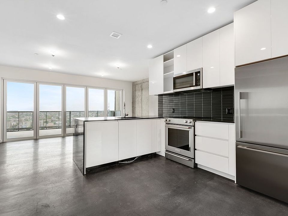 Keyed private elevator opens directly into the living room of this 15th and 16th floor duplex apartment with stunning views. Triple-pane bi-fold glass doors retract to open the entire southern facing living room to a massive private terrace with views all the way south to the Atlantic Ocean. Top floor master suite features two private terraces with views of both the ocean and the city. Over 1500 square feet of living with three king sized bedrooms, master suite with private bath, massive eat-in kitchen with space for a large table, formal dining room, and huge open living room. The apartment features central air and heat, in-unit washer and dryer, chef's kitchen with Bosch appliances, and polished concrete floors. Building features a massive common rear deck, gym, bike storage, and available parking. Conveniently located in the center of Prospect Lefferts Gardens, with Prospect Park and countless new restaurants, cafes, and shops within walking distance. Short walk to the Q train at Parkside or the 2/5 trains at Winthrop for a quick commute to Manhattan. Advertised price is net effective with six weeks free on a year lease. Email or text Brett with questions or to schedule an immediate showing!