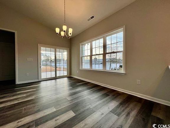 Golf cart to the beach from this beautiful custom floor plan with 3 car garage, complete and ready for you to move into, built by the local builder voted Best of the Grand Strand and Best of the Beach for the third consecutive year! In the Ocean Palms community (Voted Best Neighborhood!). This terrific open floor plan, 3 bedroom, 2 full bath home has both a large front porch and a rear porch, a three car garage, plus low-maintenance LVP flooring throughout the home - no carpet. Stainless appliances, quartz counters, a cast iron and porcelain farm sink, staggered-height light grey Shaker-style cabinetry and a convenient breakfast bar combine to give you the wow factor you're looking for in the kitchen, and abundant LED lighting, pendants over the bar, plus the slider to the covered porch in the adjacent dining area, a triple window in the dining area and a window over the kitchen sink flood the room with light. The spacious owner's suite features quartz counters with rectangular undermount double sinks, an oversized walk-in shower and plenty of storage in the huge walk-in closet. The two guest bedrooms share a full bath. All of the homes in Ocean Palms come standard with the luxury of natural gas(tankless water heater, gas heat, and gas range). The three-car garage is completely trimmed and painted, with floored attic storage space accessed by drop-down stairs. Ocean Palms is conveniently located near shopping, restaurants, schools and world class medical offices and hospitals, and only a short golf cart ride to Surfside Beach's gorgeous beach and the beautiful Atlantic Ocean. Other floor plans and inventory homes may be available. Community Pool and Cabana, too!