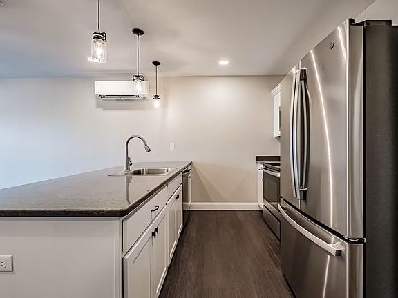 Unique, built 1 bedroom, 1 bathroom, located at the gateway of Downtown Bridgton! This beautifully appointed apartment sits directly above Queen's Head restaurant/pub, and many shops, and has beautiful views of Stevens Brook, including a shared porch/deck overlooking Stevens Brook! Walking distance to grocery stores, restaurants, Pondicherry Park with walking trails, Reny's department store, library, movie theater, Music on Main, community public transportation to Portland and one-block away walk, and Highland Lake beach! The unit offers an energy-efficient design, with state-of-the-art spray foam insulation resulting in the highest level of heating and cooling efficiency. Highly efficient heat pump for the most cost-effective heating and cooling. Unit designed by an interior decorator with a "Mountain" theme. This Apartment includes solid surface countertops, designer lighting, stainless steel appliances, Alderwood solid wood doors throughout, plenty of closet space, an office space perfect for working from home, a stackable washer and dryer, and much more. One-year minimum lease. First-month rent, and Security Deposit are due upon move-in.