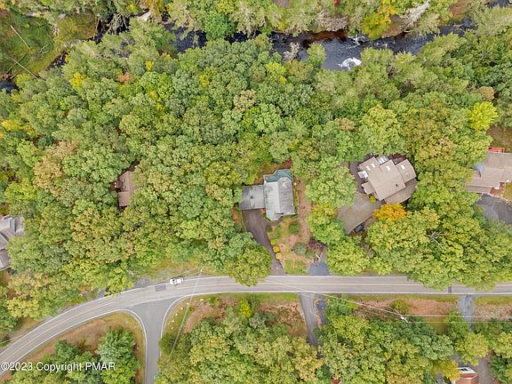 Property is Under Contract and considering back-up offers only at this time. Listen to the soothing sounds of the stream from your spacious deck overlooking the trees! Privacy, steps away from water, and endless activities to do within one of the most sought-after communities in the Pocono Mountains. This 3-bedroom/3-bathroom home offers hardwood flooring throughout, two fireplaces, an exquisite primary bedroom with walk-in closet and bathroom suite with jacuzzi tub, spacious bedrooms with vaulted ceiling, a full basement with superior walls, 2-car garage, and security system. Enjoy the proximity to all Pocono attractions, as well as a quick commute to NYC/NJ/Philadelphia. This deck and home are waiting for the perfect buyer to relax on! Make your showing appointment now!