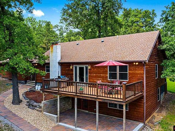 QUALITY HOME, PEACEFUL, PRIVATE SETTING with Bull Shoals Lake & Ozark Mountain views resting on 5 acres m/l joining government strip. Great room features vaulted ceilings, hardwood floors. Custom tile shower, native stone accents, hard wired sound system, walkout, safe room, patio, detached 24x12 shop and more. 3BR 2BA with 2464 sq ft of living area. Joining 7 acres m/l available.