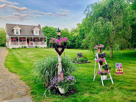 What a wonderful setting, 1.54 acres of level land, which abutting unbuildable conservation property. I want to set the stage for your visit so Let's take a tour of this 3- bedroom/ 3 full bathroom Colonial/Cape style home with a full leght front porch that has it all, the open floor plan which has a well laid out kitchen with granite counters, oak cabinets, a hammered copper kitchen backsplash, SS appliances, breakfast counter, refinished wood floors can be found everywhere, a formal dining room, and living room with a awesome fireplace where you relax on those cool evenings with a nice cup of tea or coffee or go outside thru your sliding doors and sit on one of your two decks in the back, and let's not forget the 1 year old above ground pool. Upstairs there are 3 very well sized bedrooms (master bedroom has a good sized walk in closet and one of the other full bathrooms. In the 800 sf finished lower level their are 3 additional rooms, that can be used as a man-cave, office area, (at one time was used as an additonal bedroom and the 3rd full bathroom can also be found in the lower level, and nice cabinets and a sink area with refrigator..and the cedar closet. and the laundry room. As we go outside there is a good sized 2 car attached garage, the firepit in the back yard and again the newer pool. This setting allows for privsey yet is close to all shopping and Rt 2 and the schools and minutes from a public woodlands park for hiking, fishing or just having a picnic.