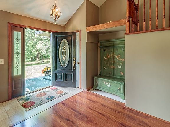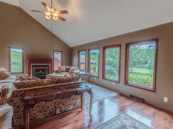 Beautiful lovingly maintained custom home on 10.1 acres. This home is a very open floor plan with vaulted living room and gas fireplace. open dining room with access to the private custom deck. 4 spacious bedrooms. Primary bedroom has vaulted ceiling, walk-in closet and huge bathroom with jetted bath. Updated A/c and is around 8 years old. Electric has been updated this month. Detached 2 car garage with ample storage.