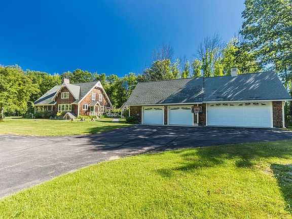 Looking for a private home in the countryside? This appealing Cape is tucked well back from the road just a few minutes away from popular Butternut Farm. The 5+ acre lot offers the perfect blend of wooded privacy, stone walls and open space, where you can work on your garden or care for the fruit trees (apple and peach) or blueberry and raspberry bushes. Spend peaceful summer hours relaxing (bug-free) in the screened in front porch. The back deck is the perfect spot for entertaining and is just off the dining room and kitchen. Detached 4 bay garage provides you with the opportunity to have a workshop and also has plenty of storage space above. You'll also have peace of mind in knowing that the septic system was replaced back in 2019. Inside, this home has a very nice flow. Sizable living room features wood floors and a fireplace with woodstove insert. Screened-in porch is accessed from this room as well. Kitchen has light cabinetry, some stainless steel appliances and granite counters. First floor also features a quaint dining room, a full bath, a den/study and a bedroom. Upstairs you'll find a spacious 13x19 primary bedroom, another full bath (complete with laundry area), a half bath and another large bedroom. This fine home checks all the boxes inside and out! It's also very easy to view.
