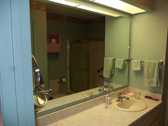 Updated unit in Cedar Glen Condominiums. Home is detached, with no shared walls, and features new carpet and stainless steel appliances. You will love the master bedroom with a vaulted ceiling, large walk-in closet and attached master en suite. Living area has an open feel with remote controlled curtain panels offering cover from the afternoon sunlight. A lovely back deck works great for summer grilling, and the attached garage with updated protective floors and utility sink has worked well as a workshop for the present owner. Other updates include new kitchen floor, water heater, water softener and insulted garage door with opener.