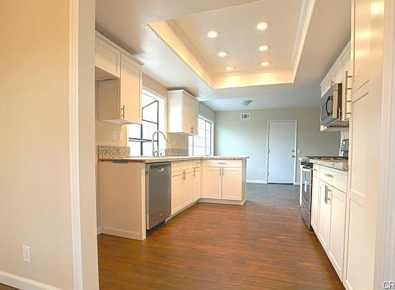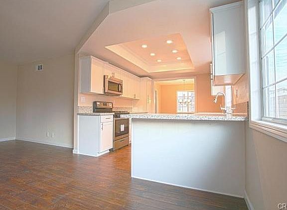 Perfect Location! Quiet, family oriented neighborhood. Completely remodeled 1,932 sq ft home. You must see this totally updated gem. An open floor plan and luxurious hardwood flooring provides a welcoming entrance into the large open living area, kitchen, dining and family room, including a fireplace. Kitchen bay window allows natural light highlighting new white cabinets topped with high end granite and new stainless steel Whirlpool appliances. The spacious Master suite boasts French doors leading directly to the backyard. Attached Master bath offers a new custom shower and beautiful tile floors. Additional 3 large Bedrooms are carpeted with ample closet space. Remodeled guest bath features custom tile, granite countertops and recessed lighting. Corner lot positioning allows extra space for boat, cars or other outdoor toys. Located just minutes from the heart of Historic downtown Orange, Chapman University, plus great freeway access. Freshly painted inside and out. Washer and dryer hookups are conveniently located in the attached two car garage, makes this home the perfect choice for your family.