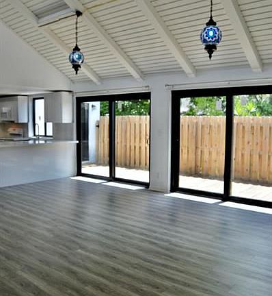 Corner unit villa features 2 bed, 2 bath, large den (could be a 3rd bed). HOA COVERS INSURANCE FOR EXTERIOR, lawn, water, and sewer! Fully updated roof, A/C, & impact-resistant windows/doors. The kitchen is a chef's delight, farmhouse sink, quartz countertops, and new appliances, including a washer and dryer. Experience bright, airy living spaces with white wood plank volume ceilings and recessed lighting that add elegance. Enjoy 2 separate patios, perfect for relaxation and entertaining. Additional highlights include a tankless water heater, upgraded electrical panel, and insulated 800 sq. ft. attic. Two dedicated parking spaces and an extended living area, this one-story villa is designed for modern living and is conveniently located near FAU, Boca Hospital, beaches, and shopping.