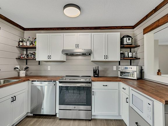 Welcome to this beautifully remodeled 4 bed / 2 bath REimagined Home. It has been fully updated and these improvements would include a brand-new kitchen, with new cabinets, countertops, pantry, shiplap & stainless-steel appliances, brand-new bathroom, including tiled showers, new trim - interior doors, carpet, LVP flooring, custom fireplace wall, outfitted with an outlet for a TV, lighting, plumbing,